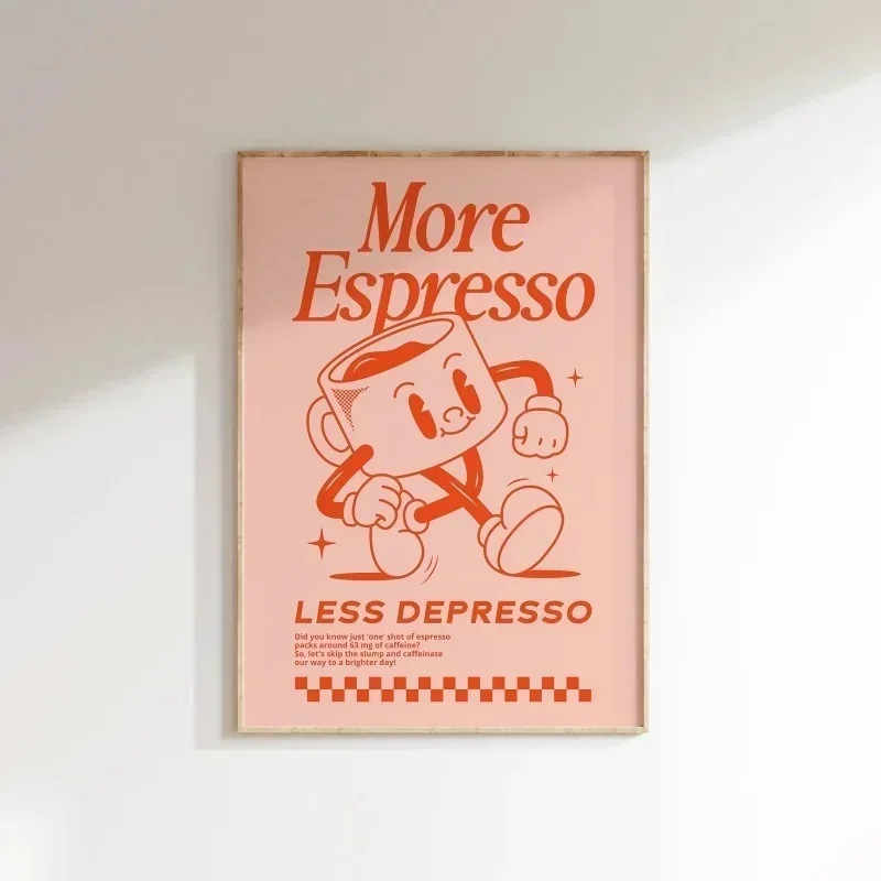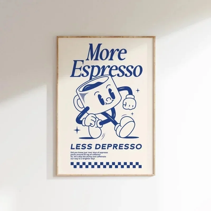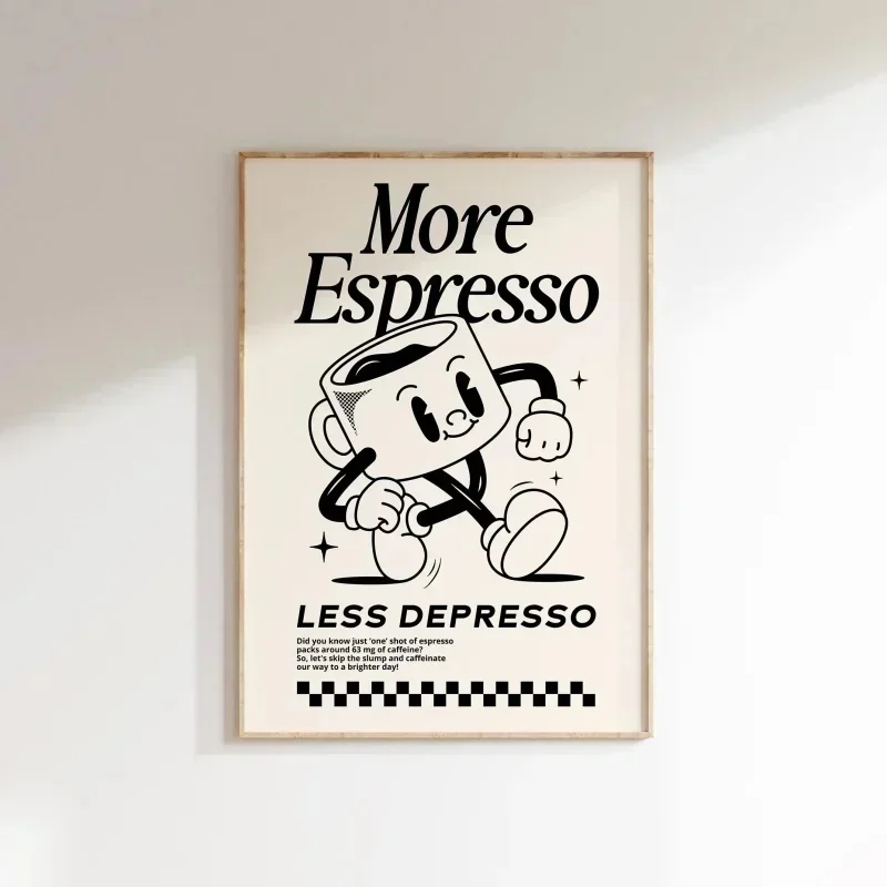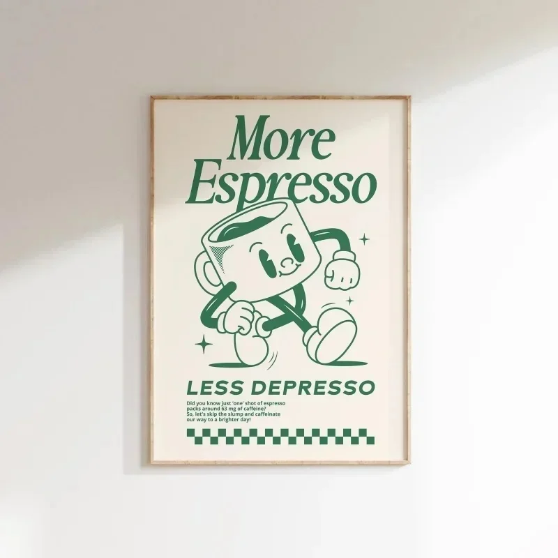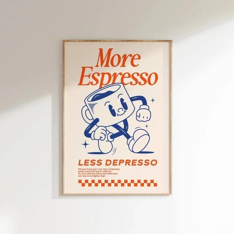 More Espresso Less Depresso Wall Art, Coffee Quote Wall Art, Coffee Station Wall Art, Coffee Bar Print, Cute Prints, Retro Quote